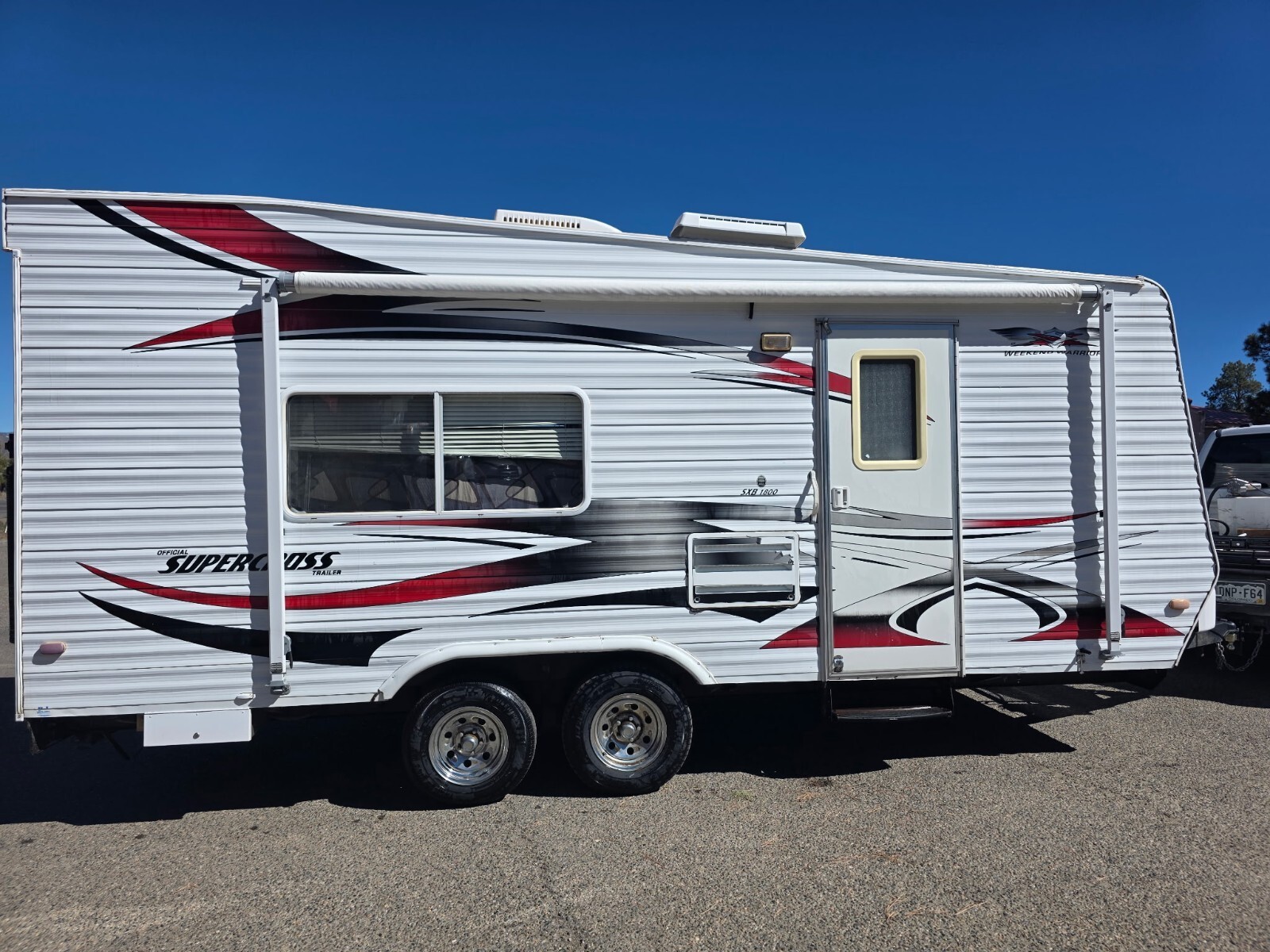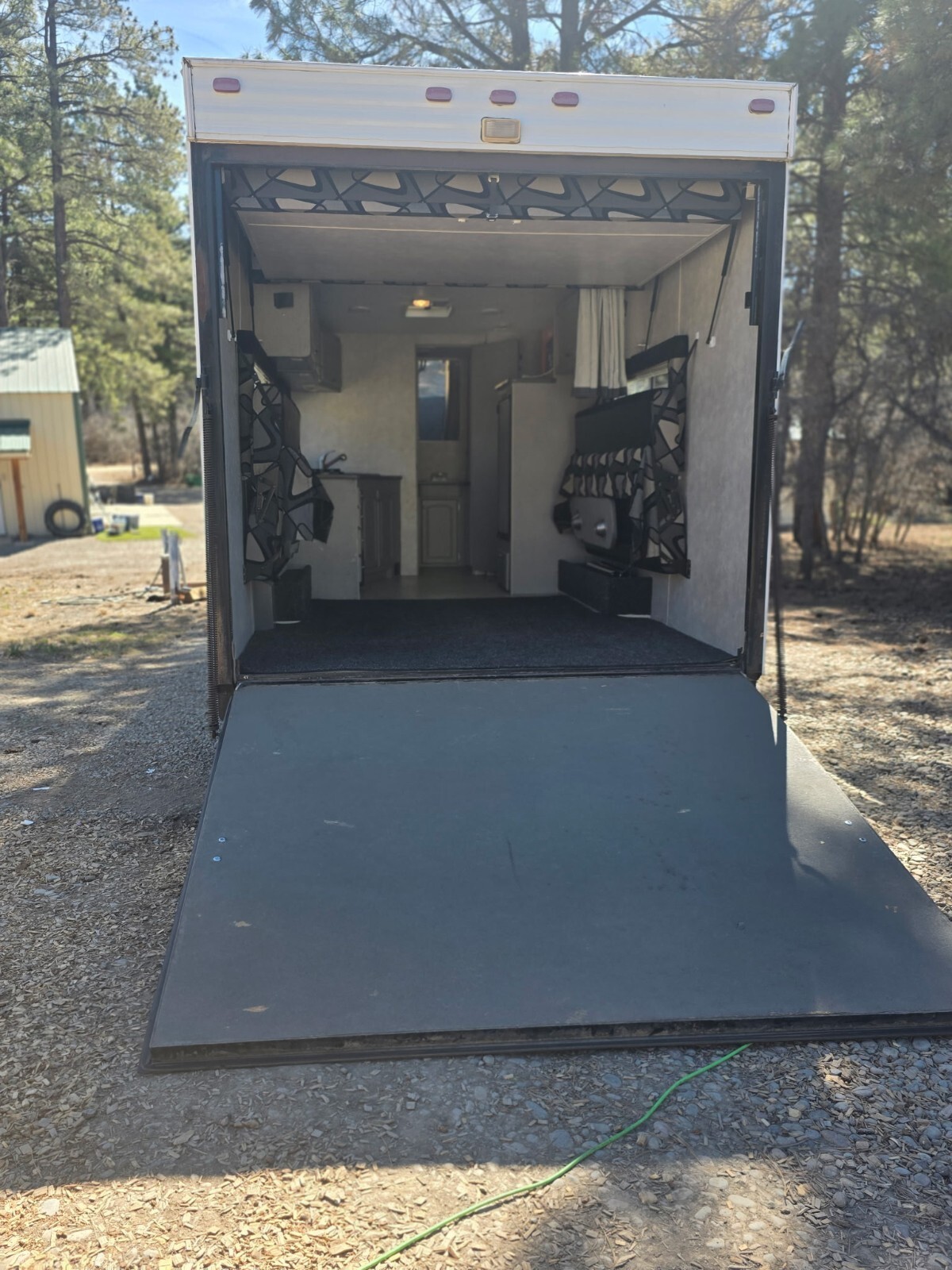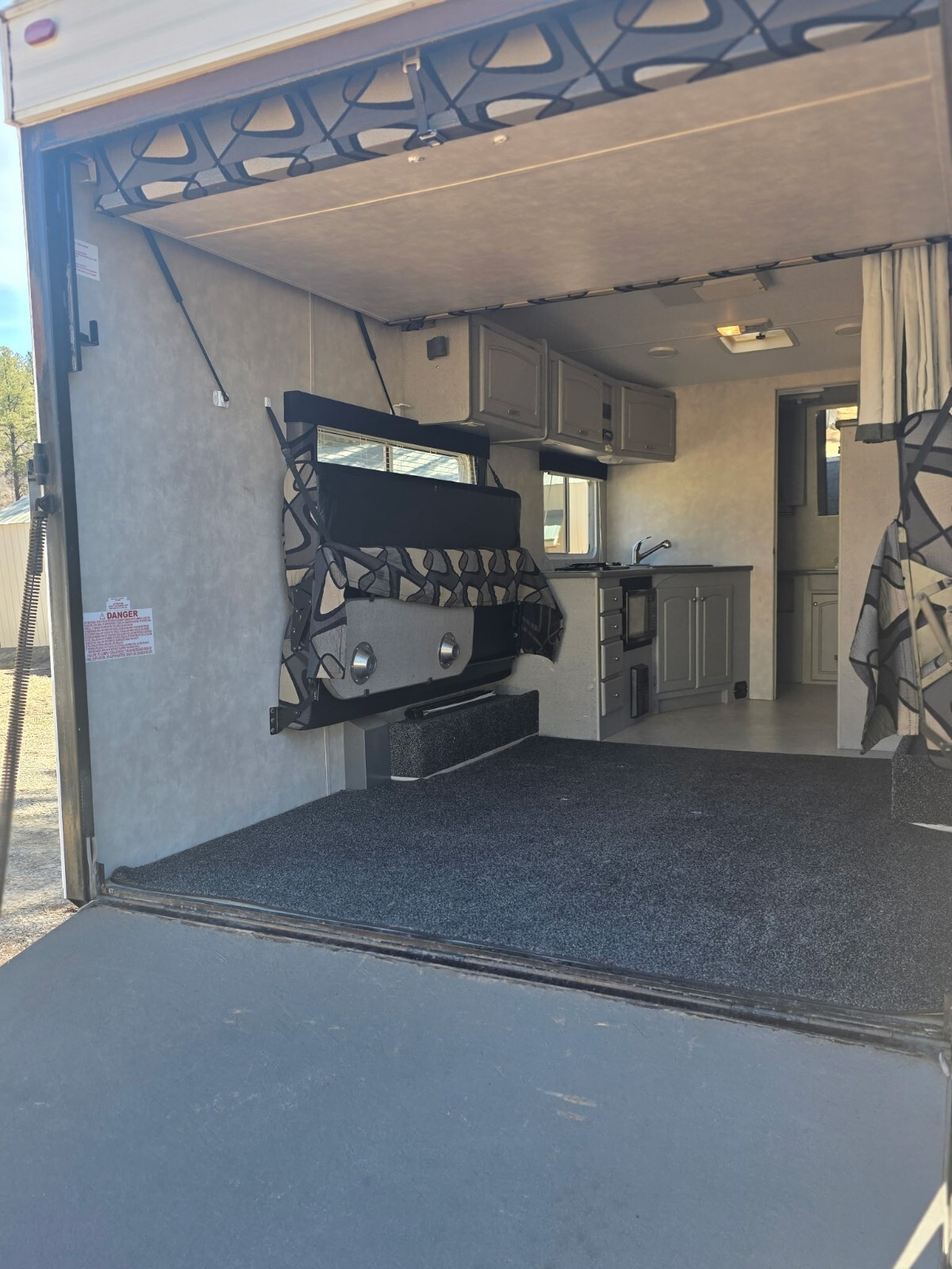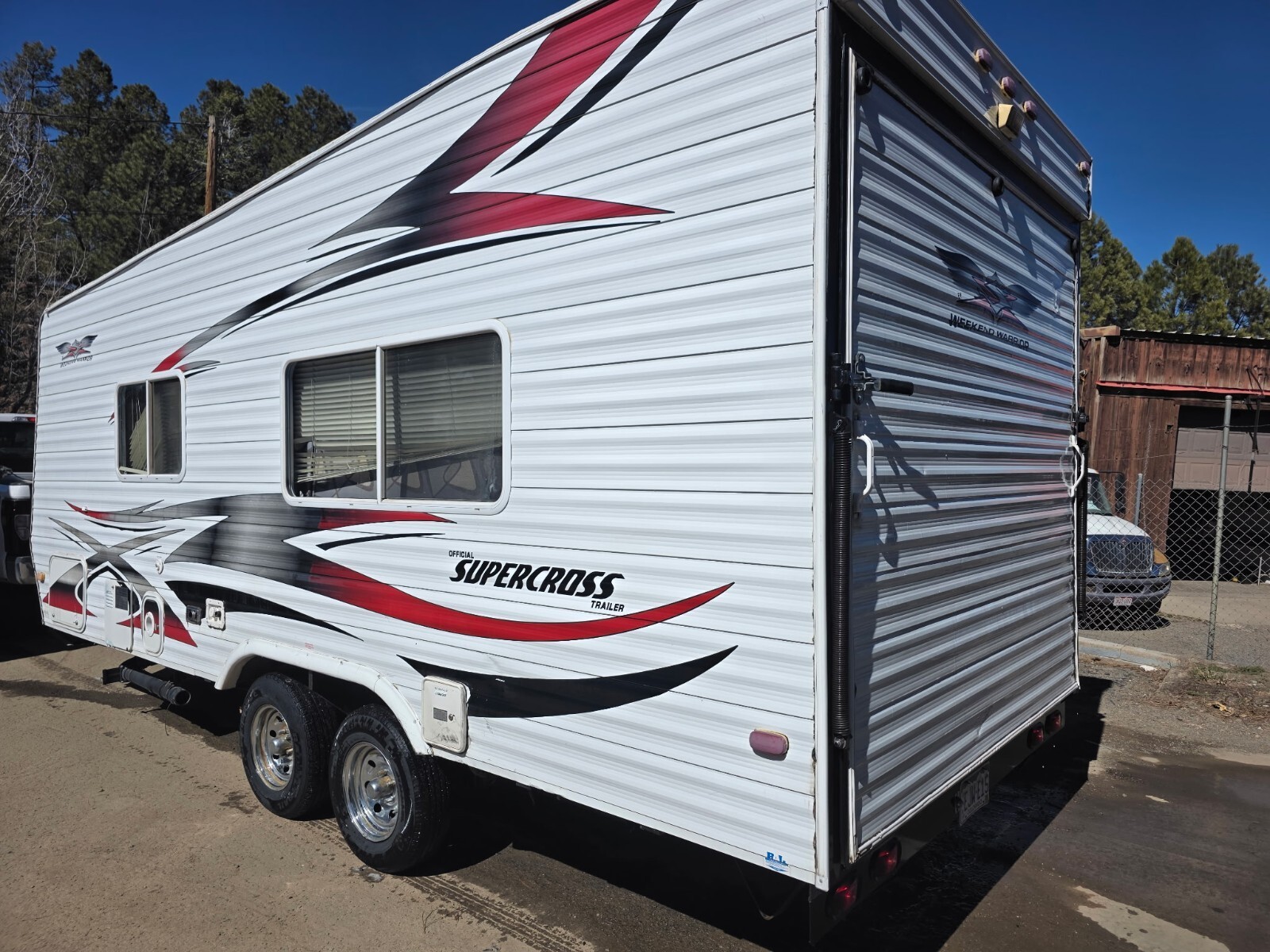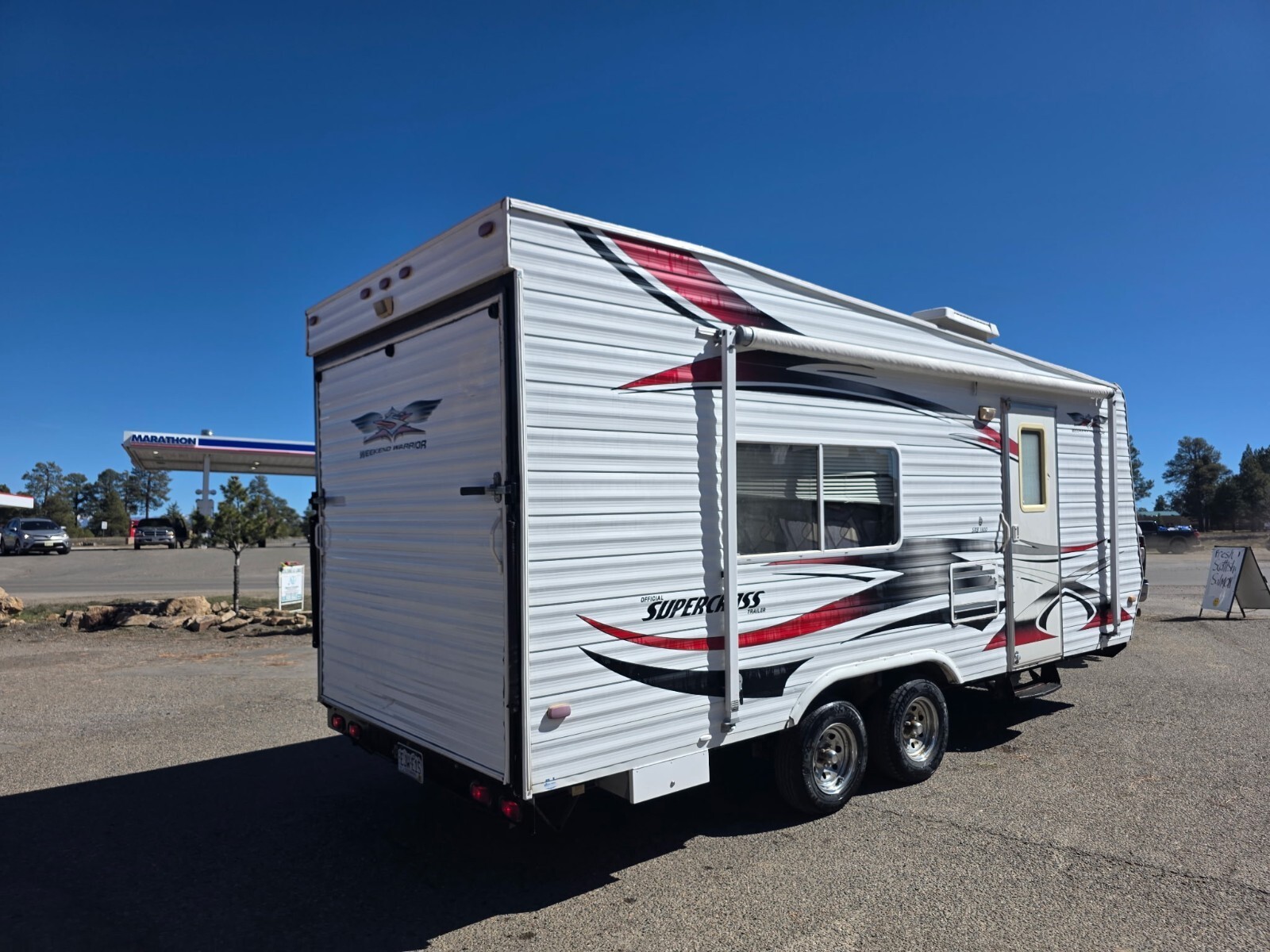 2009 Weekend Warrior SXB 1800. Is a 20 foot toy hauler travel trailer. Approx. 3,500 lbs dry wt. Designed for light duty toying. Features a large front bathroom, rear cargo ramp and sleeps up to 4 comfortably. It has a loft bed and twin beds. Key features include 30 gal fresh water tank, fuel station and sturdy construction. Tires have been upgraded to heavy duty load range D trailer tires.