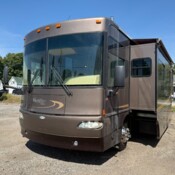 Two slideouts, one in bedroom and one in dining room. Private bathroom with shower.