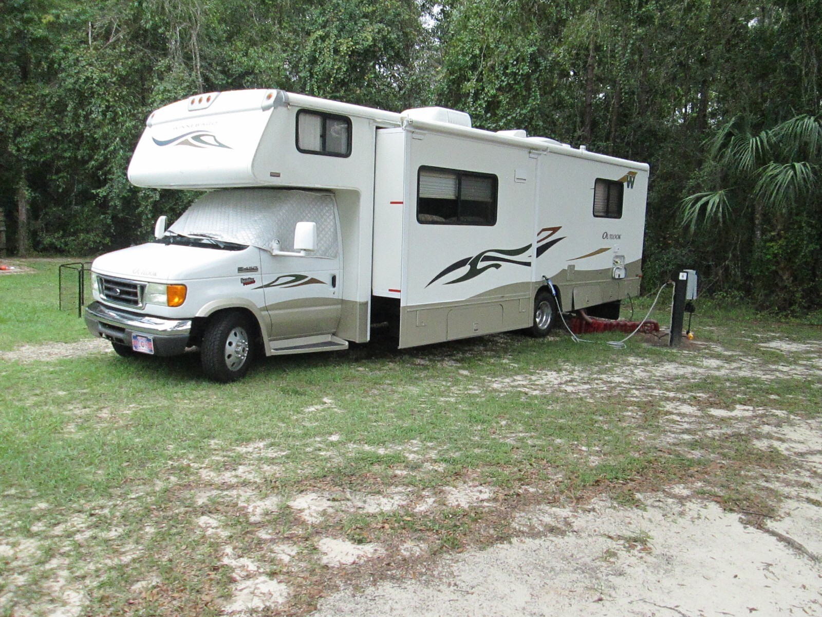FIRST OFF, LET ME START BY SAYING, FEEL FREE TO CONTACT ME WITH ANY QUESTIONS YOU MIGHT HAVE ... ORIGINALLY THIS WAS A CALIFORNIA MOTORHOME, NOW IN THE TAMPA FLORIDA AREA. (34653) I'M THE 2ND OWNER. THE UNIT WAS NEARLY $90 K. NEW. STRONG V10 TRITON ENGINE. 31 FT. ONE SLIDE. PAMPERED 45,8000 MILES. COMES FULLY EQUIPPED. FULLY STOCKED AND READY TO GO ANYWHERE. 6 NEW TIRES, 2 NEW CABIN BATTERIES, NEW CHASSIS BATTERY. SERVICED ONAN GENERATOR. FULL SYNTHETIC OIL CHANGE. NEW FULL LENGTH AWNING, NEW SLIDE AWNING. COOLING SYSTEM SYSTEM SERVICE. INTERIOR NEAR PERFECT. FRONT AND REAR ROKU TV SETS. FRONT SET HAS A VIZIO BLU-RAY SOUND BAR SYSTEM. FULL BATH WITH SHOWER / TUB. .......... BUYER RESPONSIBLE FOR ALL REGISTRATION,TAXES, INSURANCE, ETC...... THIS IS A PRIVATELY OWNED VEHICLE, CURRENTLY REGISTERED AND INSURED. TITLE IS ON PREMISES...... LOCALLY LISTED, AND I DO RESERVE THE RIGHT TO REMOVE THE E-BAY LISTING AT ANYTIME. THANKS SO MUCH FOR LOOKING !!!