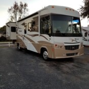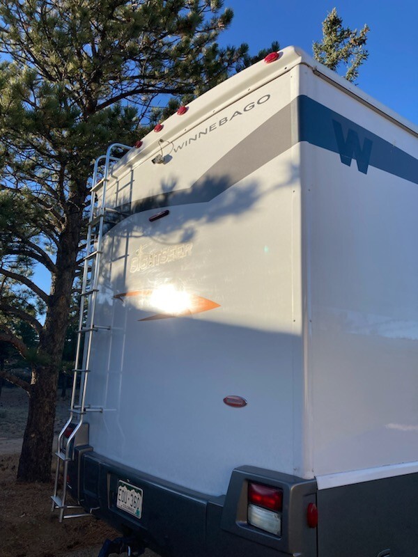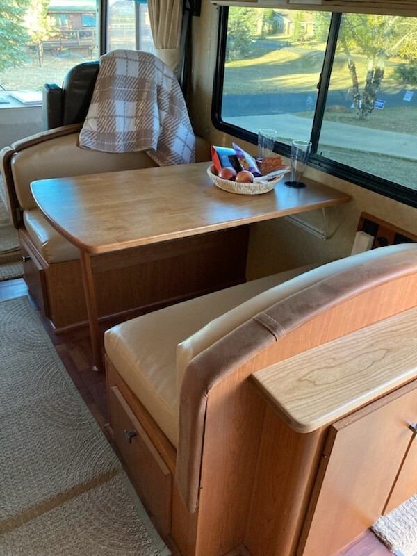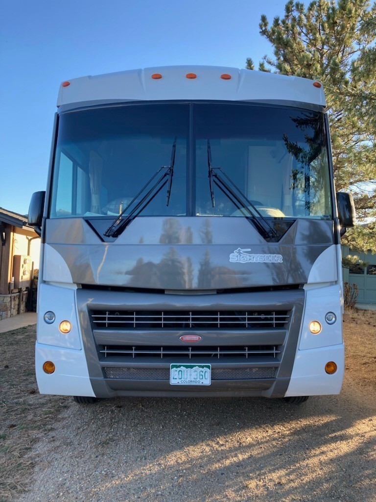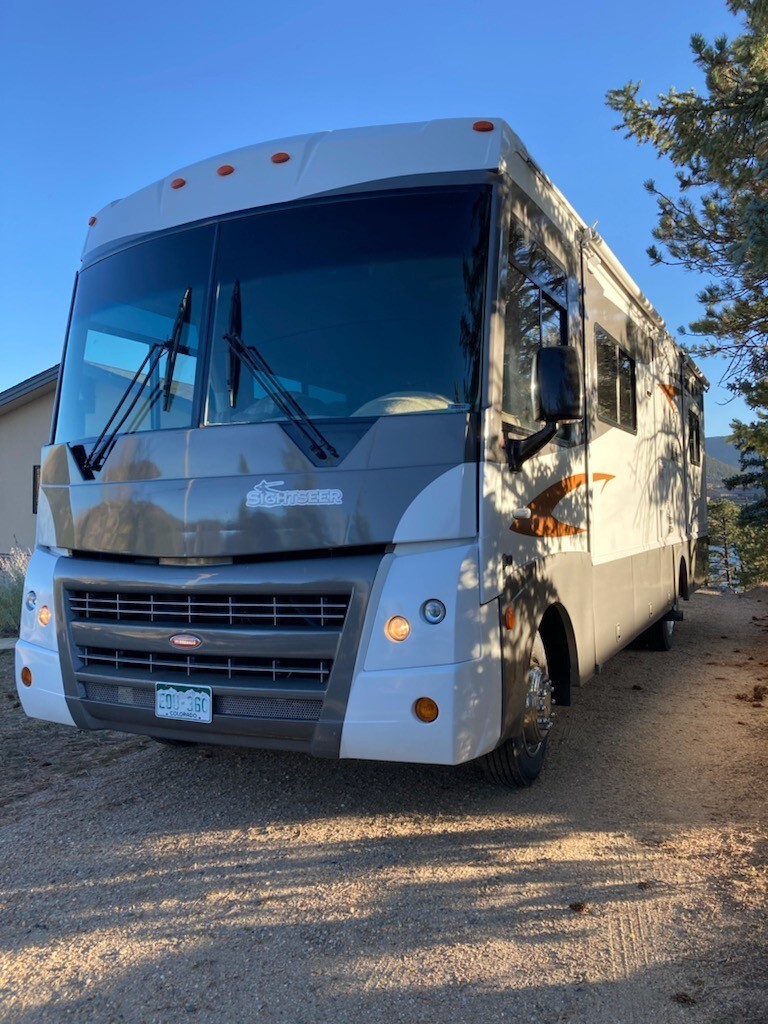 Two slide-outs (bedroom and kitchen/living), recent paint work, new tires 2025, retired couple second owner, best floorplan (facing sofa and dinette with swivel captains chairs creates comfortable conversation area), split bath, triple wardrobe, recent upholstery in dinette, new carpet, windshield curtain. Big GM 8.1 liter V8 pulls mountain passes with ease (unlike smaller 6.8 liter in Ford units), tow your boat or Jeep, smooth-shifting 4-speed automatic. Carefully maintained with open wallet. Large bins hold 2 bicycles, 10 foot screen enclosure, 8 camp chairs, firewood, and much more. Safe-T-Plus steering stabilizer, 4KW Onan generator, dash and roof AC. Come up to Estes Park and drive it.
