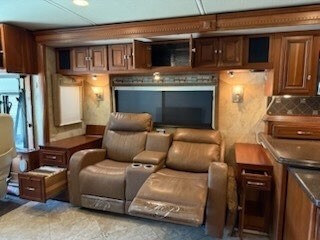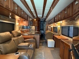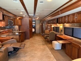 This beautifully remodeled coach features a 400HP engine (NON DEF) and offers a luxurious and comfortable interior. Key upgrades include new recliners in the living area with heat and vibration functions, complemented by custom adjacent wood cabinetry.