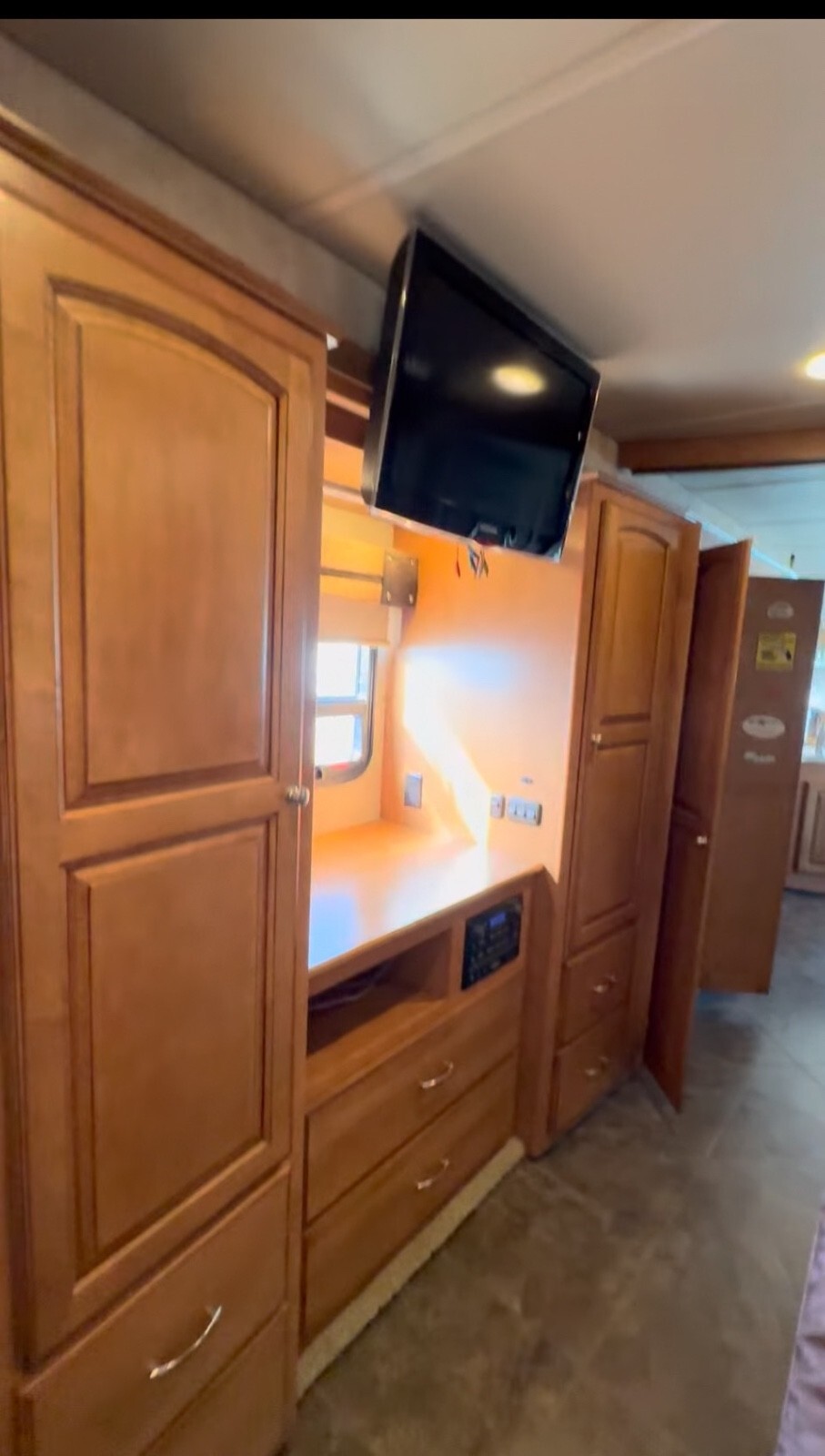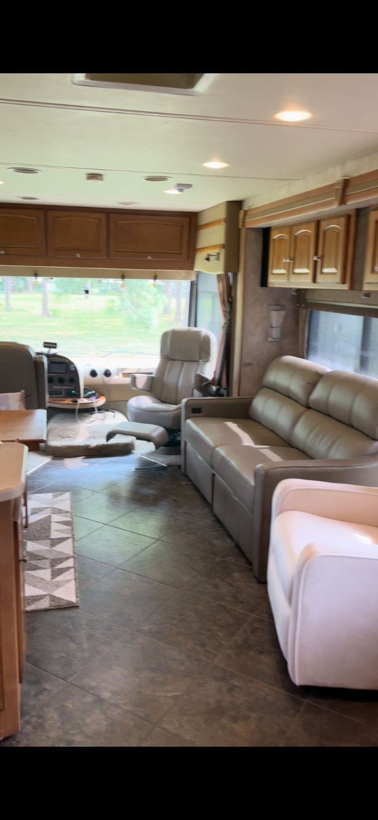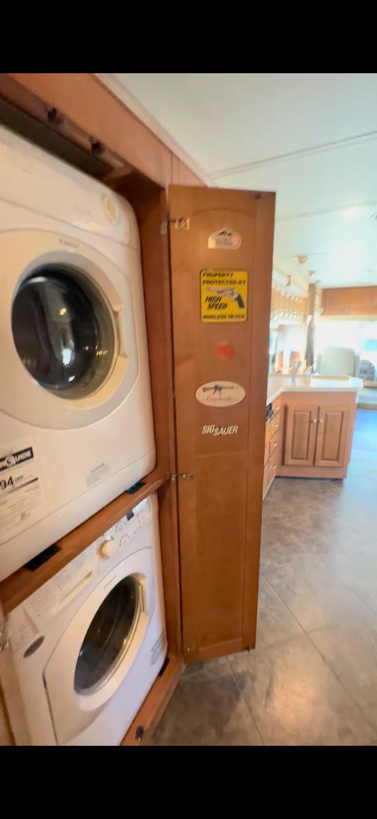 Super clean. No smoke no animals.Brand new tires.New lithium batteries for coach $800. New batteries for starting.Two TV. 42&32.New full size washer and dryer. New furnace.Bath and 1/2.Two roof AC with heat.100 watt solar panels on roof.THIS UNIT HAS A COMPLETE THERMOSTAT FOR THE GENERATOR. TURNS IT ON AND OFF AS NEEDED. COMPLETE PEACE OF MIND.When Off road. Front of unit has the old protective plastic on it. It is ugly (see photo)needs a bra.Come steal it for 49,900.