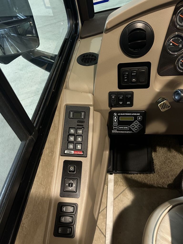 Step inside and youll find a beautifully appointed interior where residential comfort meets thoughtful functionality. The spacious living area features comfortable seating, rich wood cabinetry, and large panoramic windows that bring the outdoors in. With multiple slide-outs expanding the living space, this coach feels open, airy, and ideal for both relaxing and entertaining.