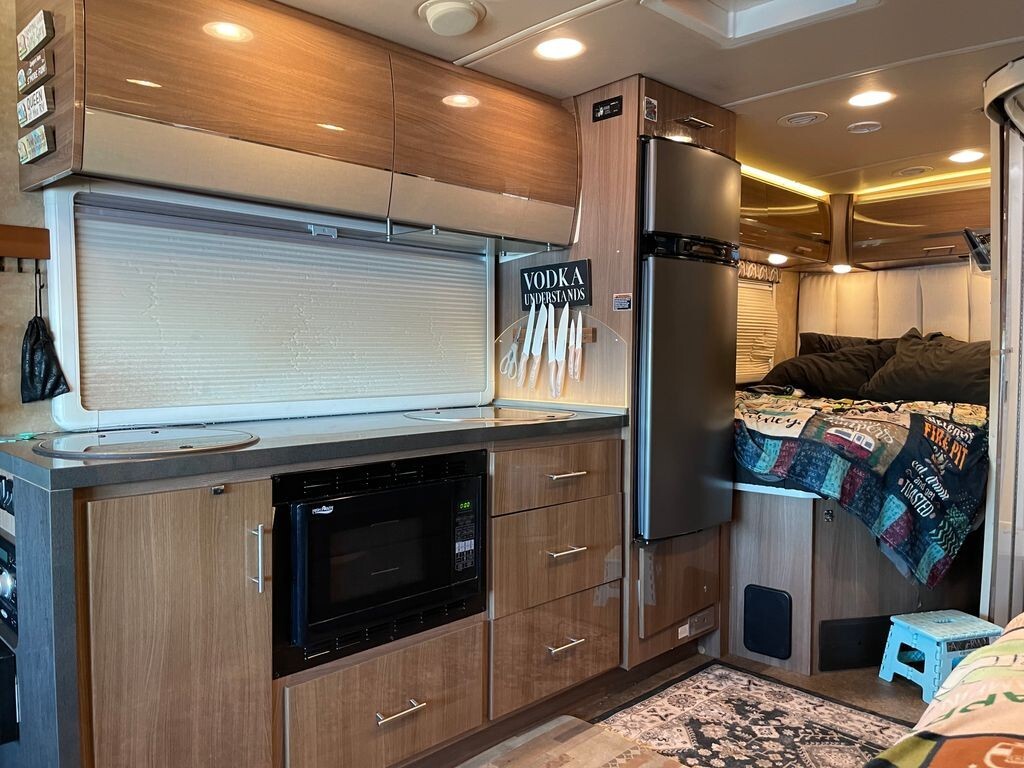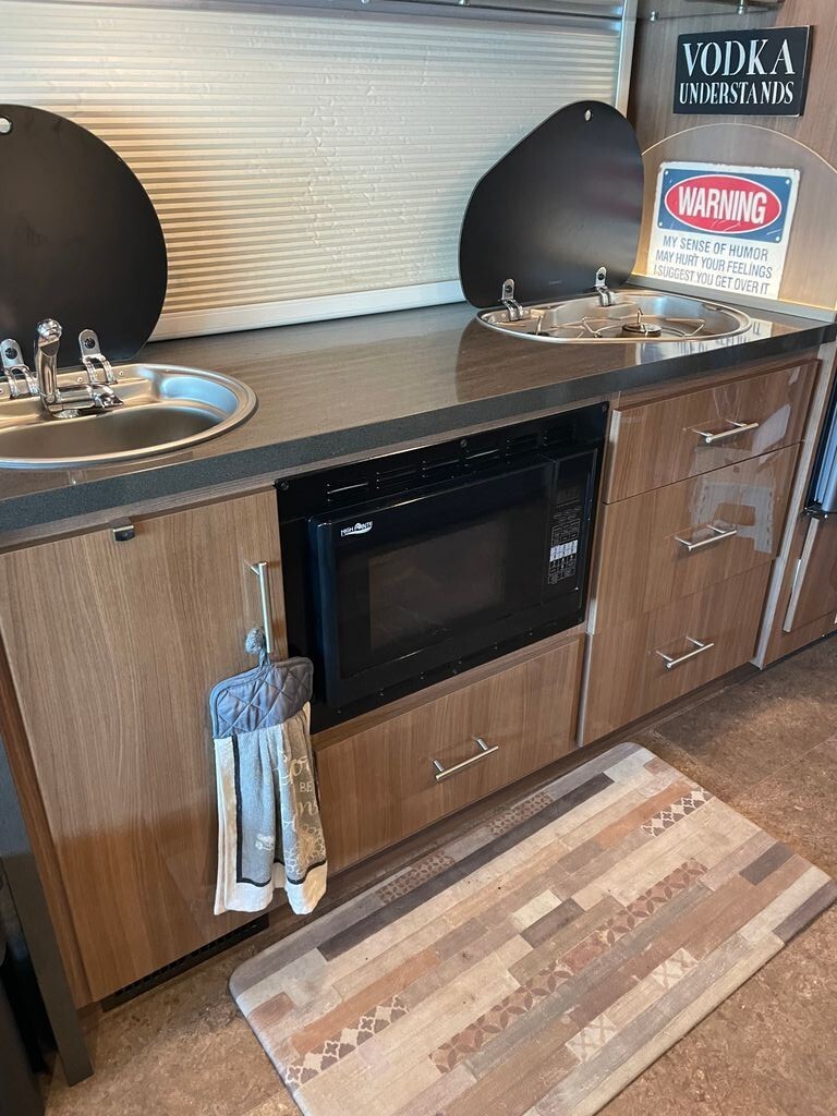I will sell as a turnkey package including new Pit Boss Pellet Grill, fire pit, front, camera recorder and much more. We also added a direct propane gas line directly from the tank on the unit so there is no need to take tanks for short trips. Metal flips up attachment for rear storage. Leveling units, tables that fit perfectly and the best EMS 50 amp protector with every attachment needed.