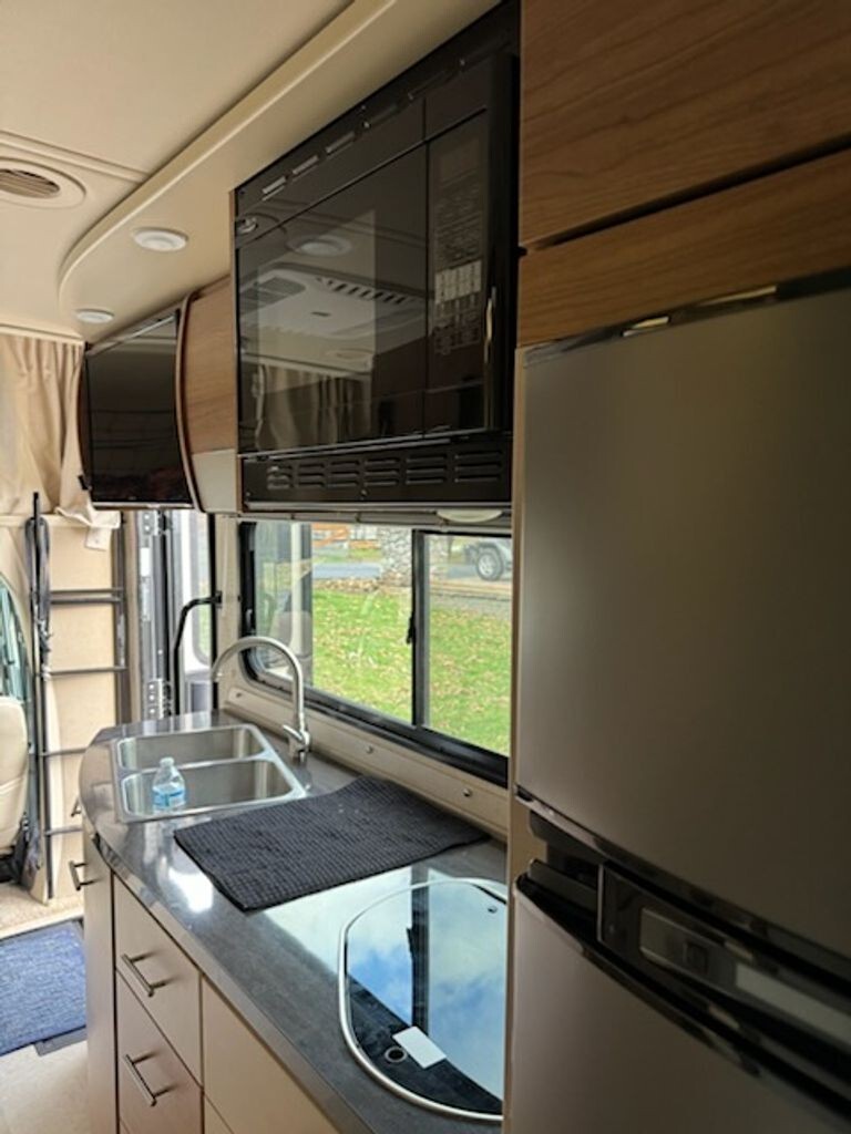 Step inside to an inviting living area that maximizes every inch of space. Comfortable seating, abundant natural light, and a well-appointed layout make this coach ideal for relaxing after a day of travel. The fully functional kitchen includes efficient appliances, smart storage, and plenty of counter space - perfect for preparing meals on the road.