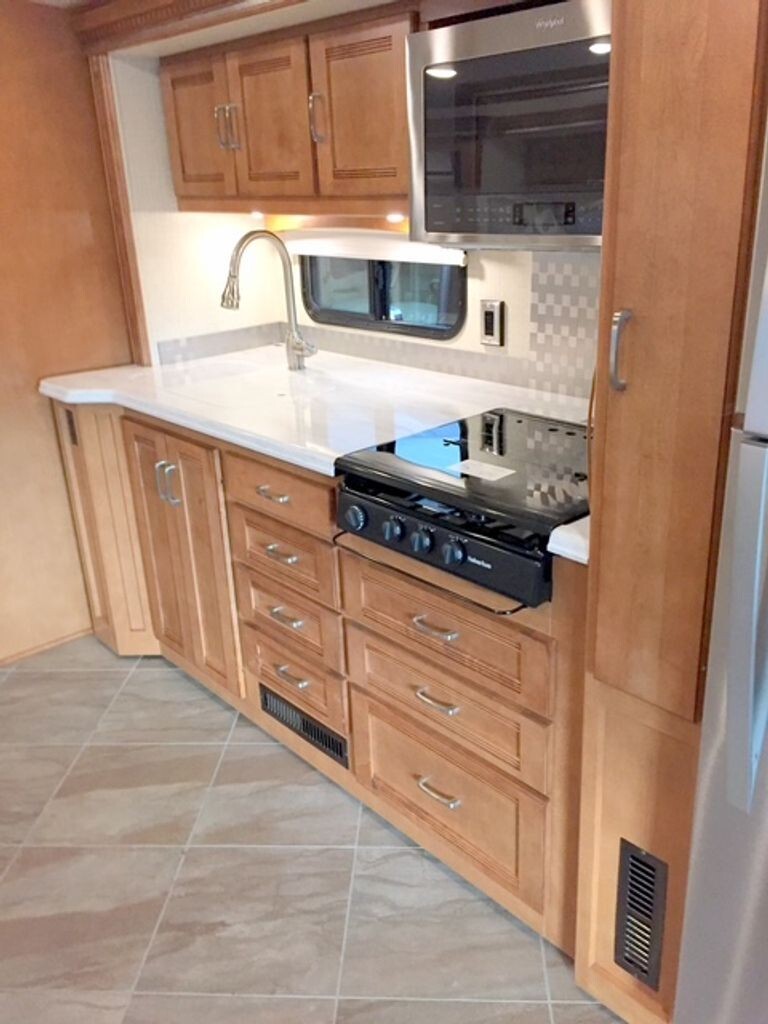 Step inside and discover a sanctuary designed for life on the road. The spacious interior offers premium finishes, plush seating, and an intelligently laid-out floor plan that maximizes both luxury and practicality. Entertain guests in style, unwind with the LED-lit living area, or prepare gourmet meals in the fully equipped kitchen featuring modern appliances and abundant storage. Two strategically placed TVs ensure you can catch your favorite shows from anywhere in the coach, while the full-size washer and dryer keep life comfortable and convenient no matter how far your journey takes you.