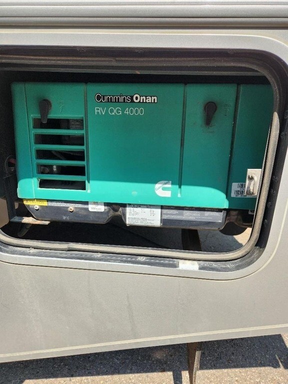 The side aisle bathroom is fully equipped with a 34" x 34" shower, toilet, sink, and storage cabinet, perfect for extended trips. This coach offers ample storage both inside and out, making it ideal for a couple or small family seeking a full-time or weekend adventure lifestyle. Additional amenities include a convection microwave oven, three TVs with CD/stereo system, cable readiness, outside shower, generator, furnace, heat pump, and a new air conditioning unit. The motorhome also comes with leveling jacks, hitch, backup camera, front steering and rear suspension stabilizers with Koni shocks, smoke, CO, and LP gas detectors, and a ceramic coating with a 5-year warranty.