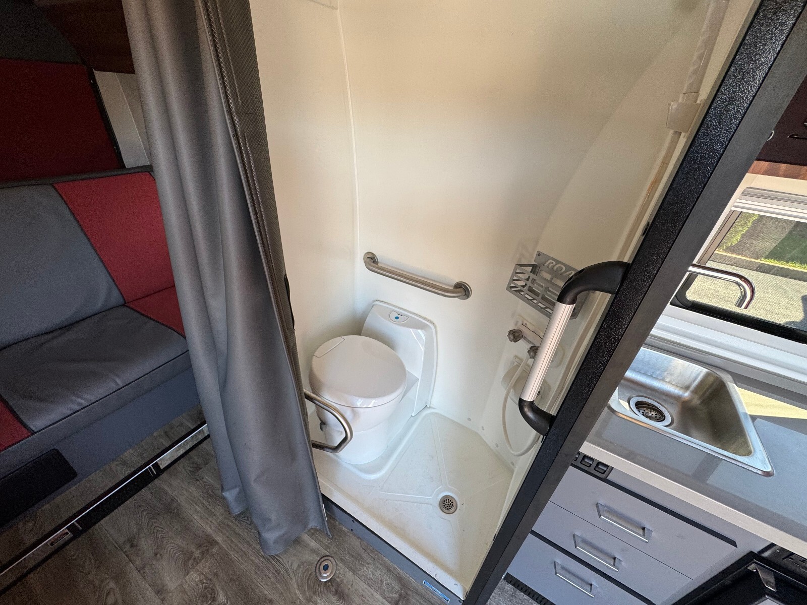Travel in freedom and comfort. The 59RZ features an under-vehicle wheel chair lift, wheelchair tie-downs for secure travel, lowered countertops and controls, bathroom grab-handles, and increased storage capacity behind the powered reclining sofa/bed.