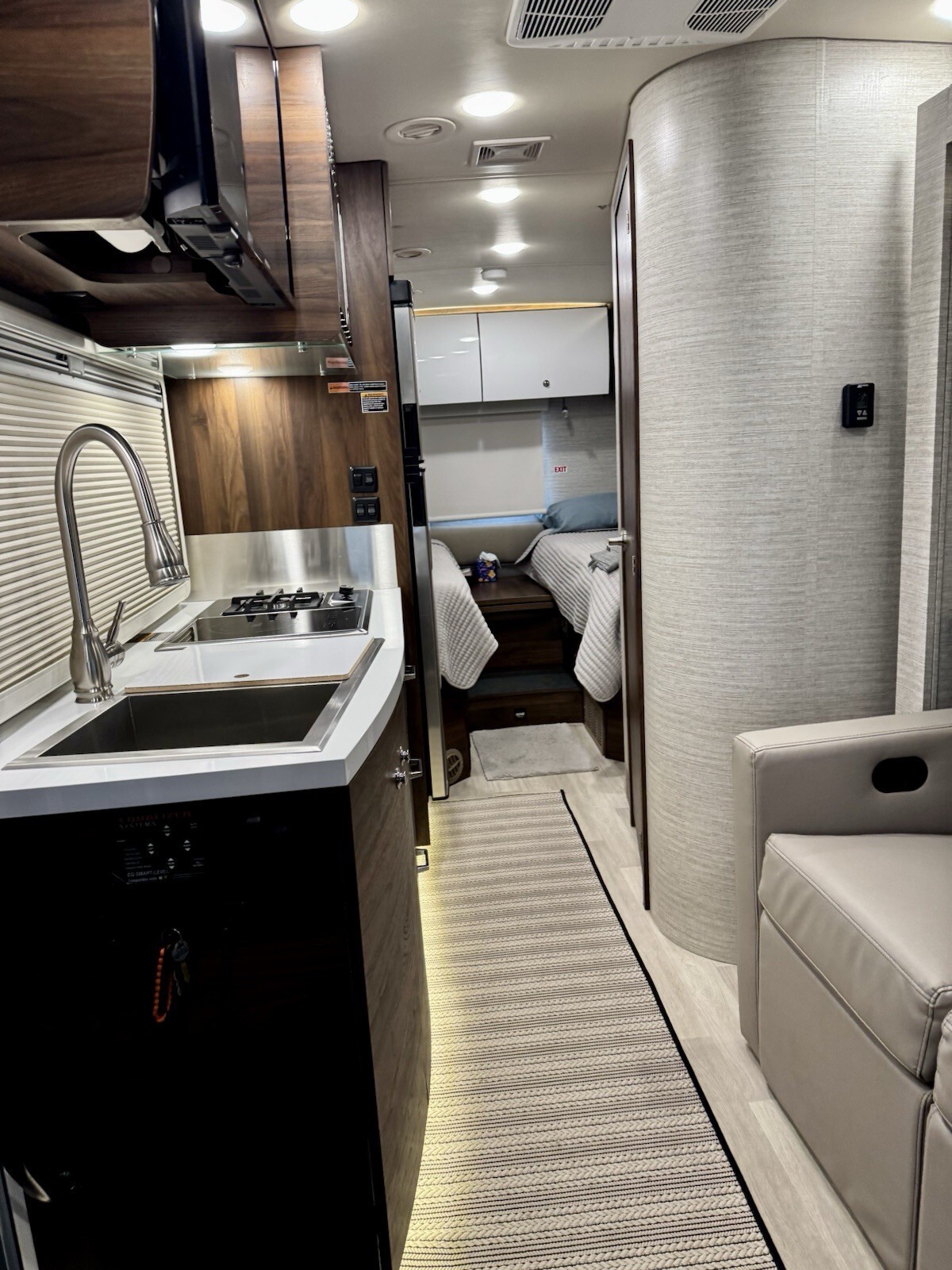Very well equipped Winnebago View 24V in Excellent Condition.Always GaragedFull body paint,Lithium battery upgrade with 600 watts of solar, Automatic Leveling jacks,Entertainment System, Ultrafabrica Cab Seats,Dual Pane Windows,Dash Cam (front and rear)